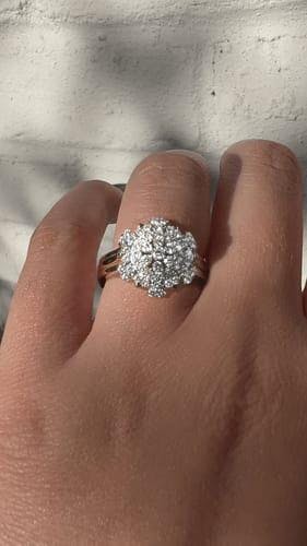 Pave Set Snowflake Cluster Round Brilliant Halo Two-Tone Setting Vintage Style Engagement Ring Wide Ring Band
